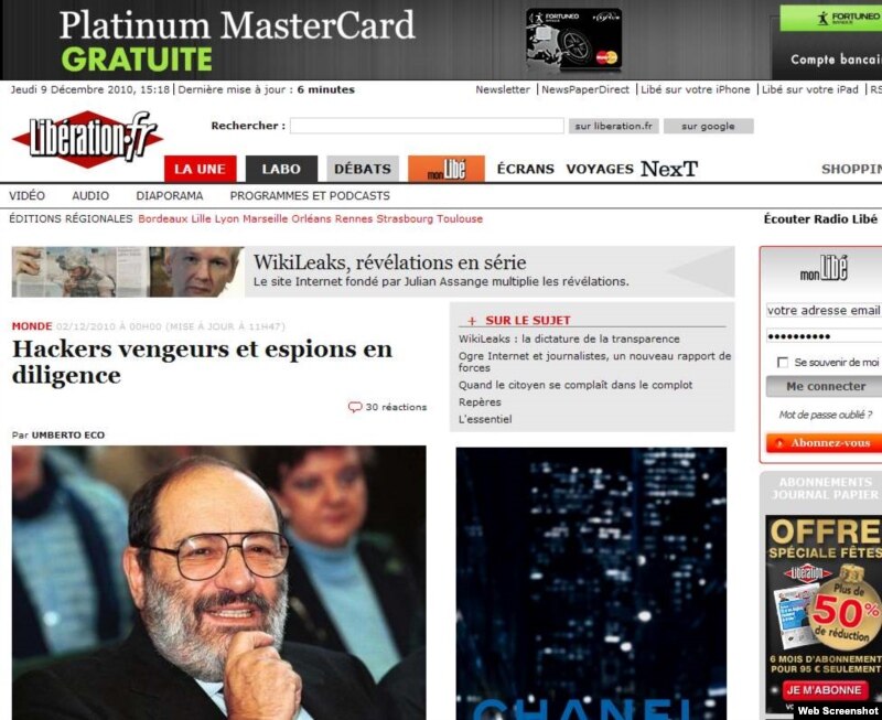 Umberto Eko "WikiLeaks" haqda nə yazır?