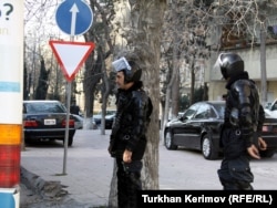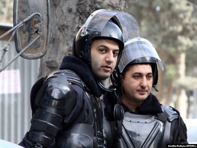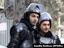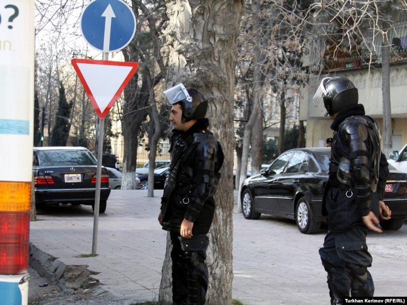 “Dubinkalı”, dəbilqəli və xüsusi mühafizə geyimində olan polislər Təhsil Nazirliyini dörd tərəfdən nəzarətə alıb.
