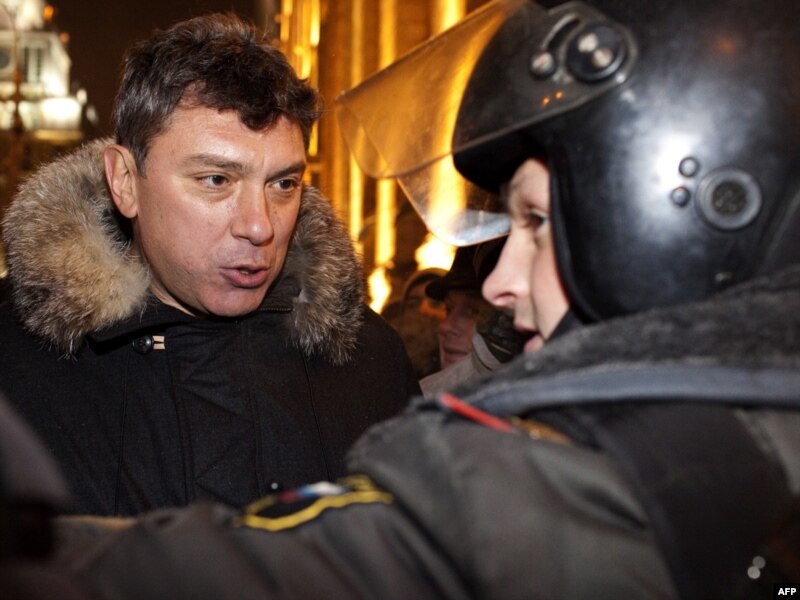 Борис Немцов(слева) на митинге 31 декабря 2010 года до своего задержания