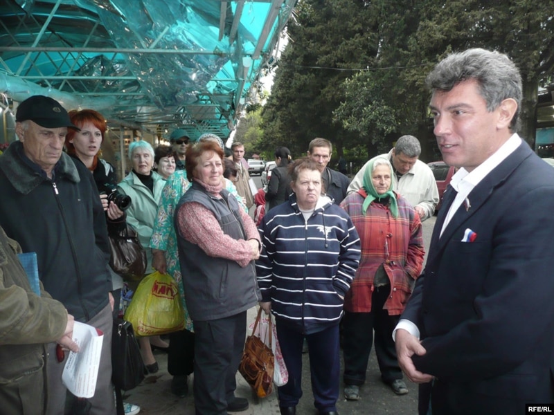Soçi meri seçkisində namizəd olan Boris Nemtsov seçicilərlə görüşür, 19 aprel 2009