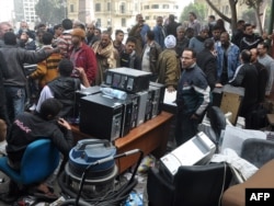 Стрельба слышна в типографии Центрального Банка Египта в Каире. Несколько отделений банка были атакованы протестующими по всему Египту.