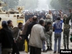 В Каире люди, взгромоздившиеся на боевые машины пехоты, скандируют: