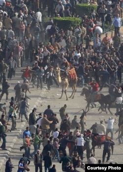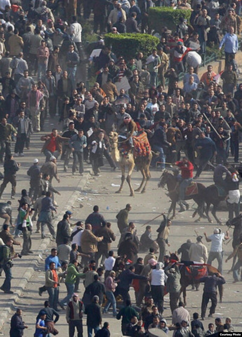 «Twitter və facebook-a qarşı Misir prezidenti Hüsnü Mübarək ancaq dəvə və at tapıb. Bu artıq sivilizasiyaların qarşıdurmasıdırı...». Sandinist belə yazır və bloqunda bu şəkli yerləşdirib.