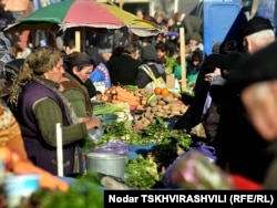 Ərzaq bazarında qiymətlərin nə qədər artdığını öyrənmək üçün «Dinamo» stadionunun yaxınlığındakı bazara yollandıq. Burada məhsullar topdansatış qiyməti ilə satılır, yəni tərəvəz, ət və süd məhsullarını bir neçə tetri ucuza almaq olar. Bazarın girişində kartof satılır, satıcı deyir ki, Türkiyə kartofudur: