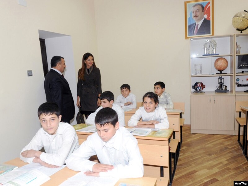 Sonra Heydər Əliyev Fondunun prezidenti Mehriban xanım Əliyeva Şüvəlan qəsəbəsində Respublika Humanitar Fənlər Təmayüllü Gimnaziyada aparılan təmir işləri ilə tanış oldu.