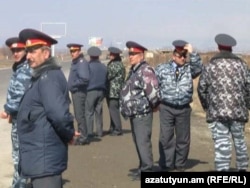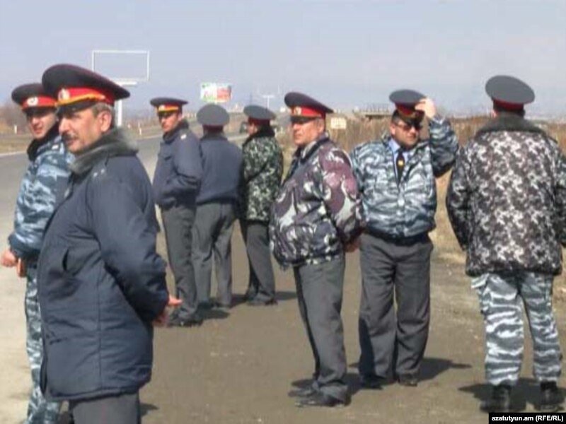 Polis paytaxt Yerevana gedən yollarda keşik çəkir, 1 mart 2011
