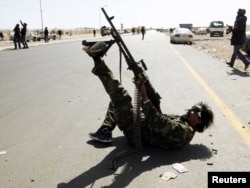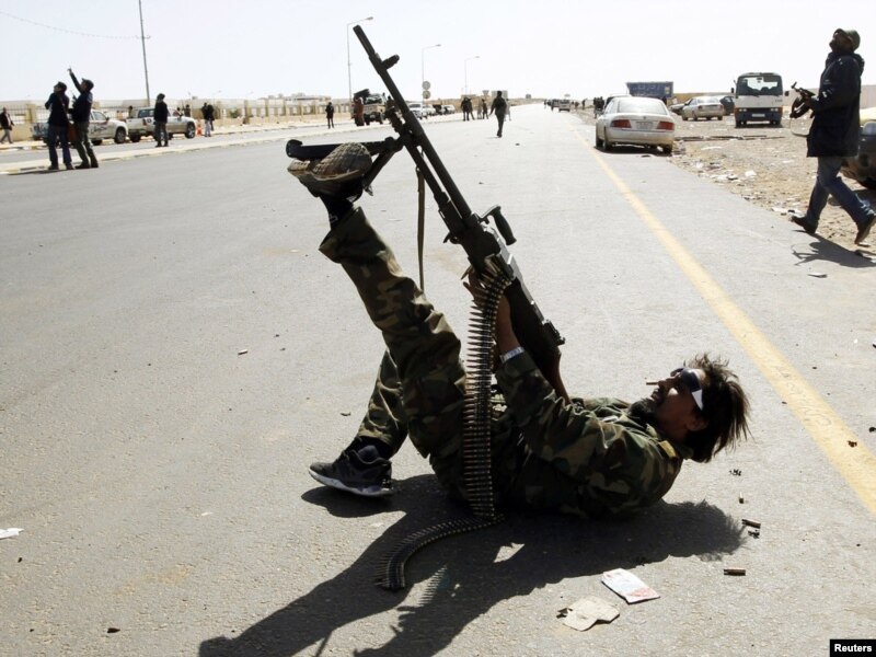 Müxalifətin silahlılarından biri Qaddafinin təyyarələrinə qarşı, Ras Lanuf, 7 mart 2011