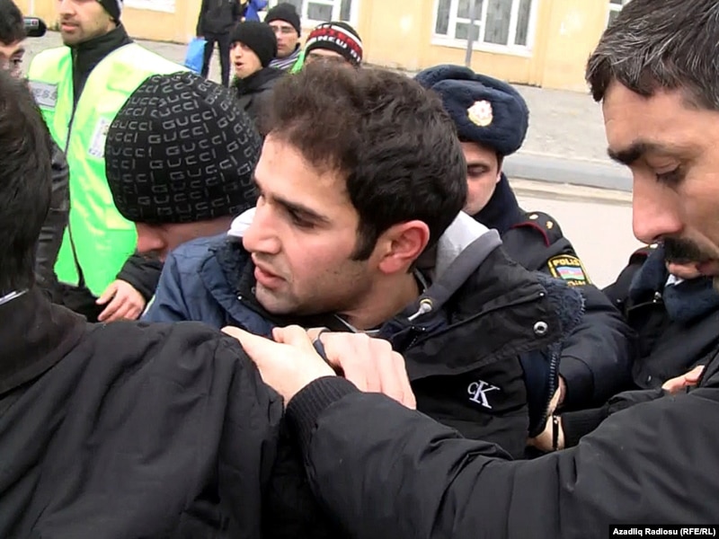 Джамиль Гаджиев держал в руках плакат с надписью «Azad ol!»-«Стань свободным!» и выкрикивал лозунги рядом со зданием Нефтяной академии. Полицейские, забрав плакат, отпустили его, однако затем лица в гражданском усадили его в машину и увезли.