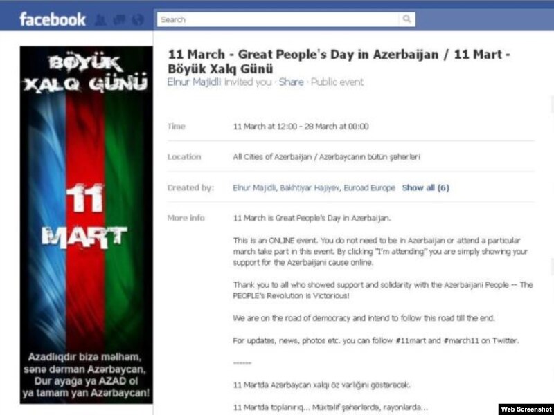 Любому, кто периодически смотрит азербайджанские телеканалы, было ясно и очевидно, что была абсолютно неадекватная истерия на них по поводу 11-го марта и Facebookа в принципе. Сделать такой вывод стоит хотя бы, потому что был арестован один из соучредителей этого мероприятия на Facebook Бахтияр Гаджиев (кто бы мог подумать, что из-за «лицобука» можно сесть в реальную тюрьму, уж точно не об этом мечтал Цукерберг, создавая свою соцсеть). Не говоря уже о других арестованных молодежных активистах, неимеющих непосредственного отношения к модерированию данного виртуального мероприятия, таких как Даянат Бабаев, Рашадят Ахундов и других, но активно поддержавших идею мероприятия «11 марта». И не говоря уже о том, в каких только грехах не обвиняли по ТВ молодежь входящую в данную группу - и в армянском происхождении (как же это мне знакомо); и в отсутствии патриотизма; и даже нашли мифическую внешнюю силу, провоцирующую их к этому; и в выполнении заказа этих сил за мзду и т.п. Короче, в лучших традициях АзТВ. Но самым замечательным подтверждением страха властей стало заявление пресс-службы МВД Азербайджана, вывешенное на сайте МВД в преддверии 11-го марта, с клятвенными заверениями в верности «Родине, Партии и Лидеру».