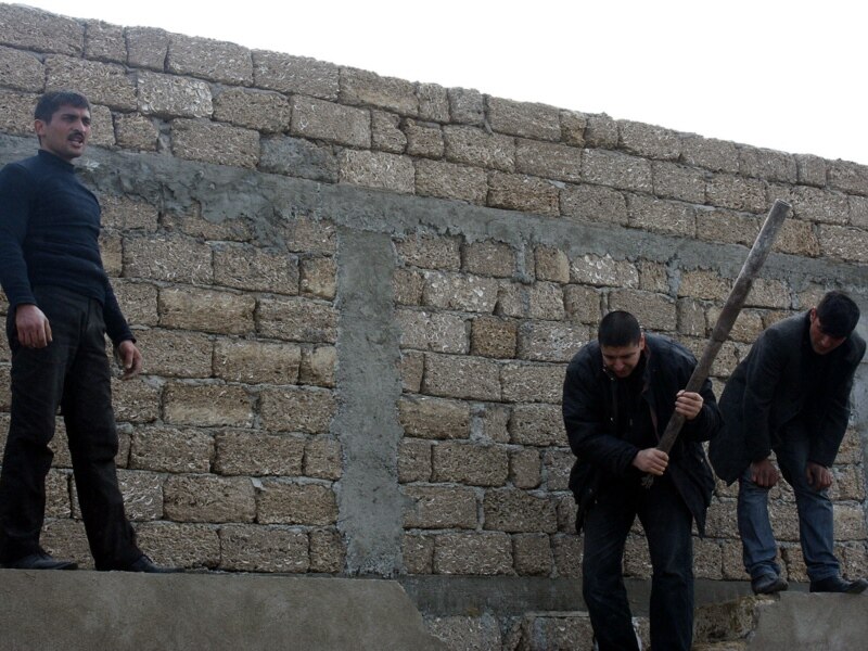 Türkan sakinləri əllərinə bel alıb Xəzər sahilindəki villaların hasarlarını sökməyə cəhd ediblər.