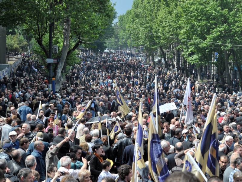 Gürcüstanın BMT-dəki keçmiş nümayəndəsi İrakli Alazaniyanın rəhbərlik etdiyi əsas müxalifət qrupları aksiyaya qoşulmayıblar.