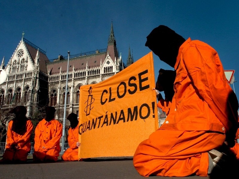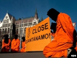 «Amnesty International» Quantanamo həbsxanasını bağlamaq tələbi ilə Budapeştdə aksiya keçirir, 11 yanvar 2006
