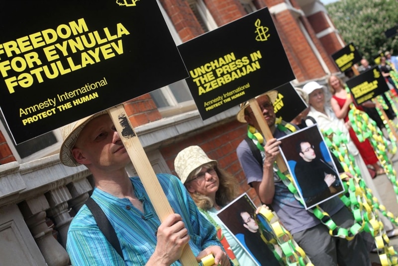 «Amnesty International» Eynulla Fətullayevi «vicdan məhbusu» hesab edir. Təşkilat hələ jurnalist buraxılmamışdan iki gün əvvəl britaniyalı jurnalistlərlə birlikdə «Twitter»də Fətullayevin azadlığa buraxılmasına çağırış etmişdi.