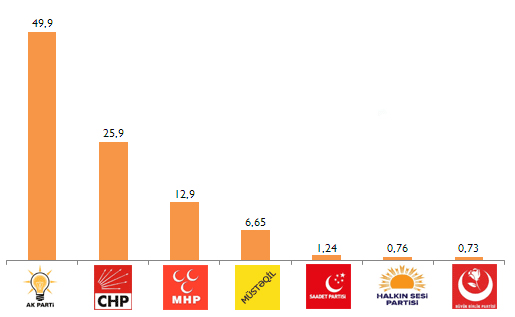 1. AKP (Ədalət və İnkişaf Partiyası) - hakim partiya 49.9%