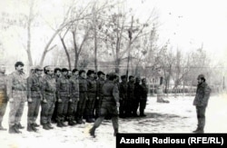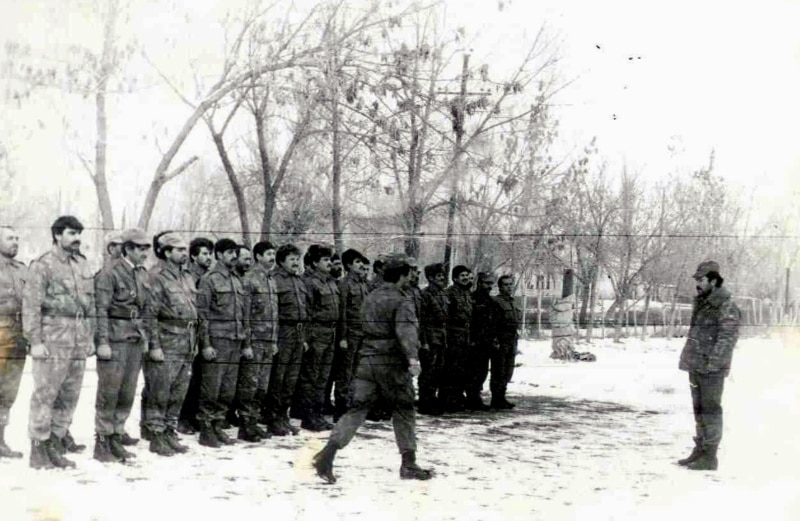 Şahmərdan Cəfərov əsgərlərə baxış zamanı, 1992-ci il.