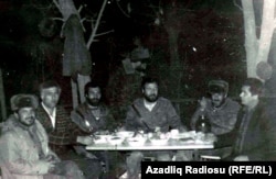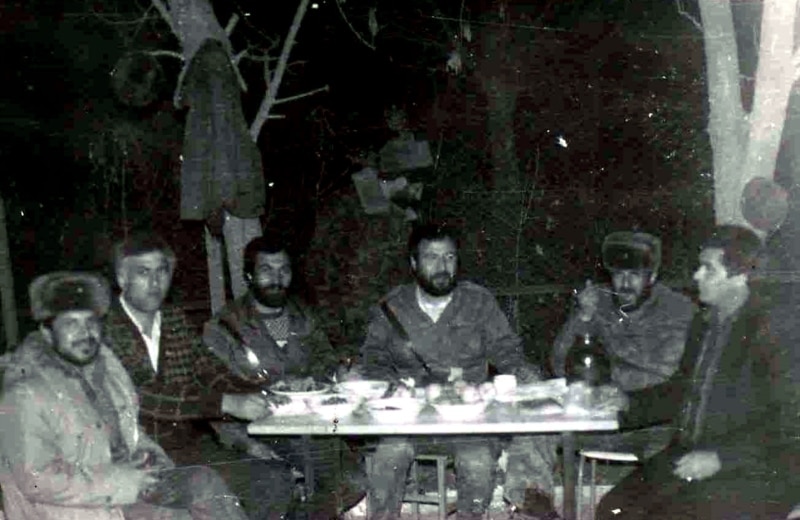 Şahmərdan Cəfərov (ortada) hərbçi yoldaşları ilə Novruz bayramında.