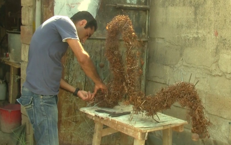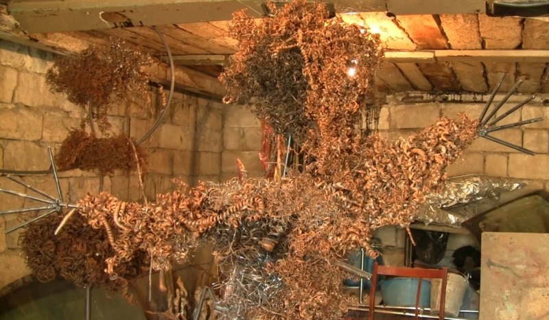 Məmməd Rəşidov heykəlləri şüşə, dəmir qırıntıları kimi tullantılardan düzəldir. Ona görə də deyir ki, qarajda sənətlə məşğul olmağı lap yerinə düşüb: