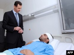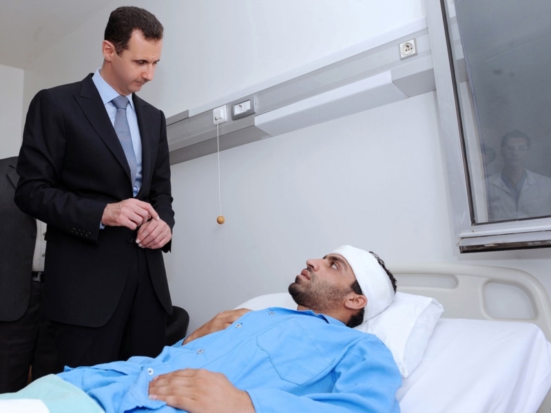 Башар Асад посещает раненого солдата сирийской армии, Дамаск, 1 августа 2011