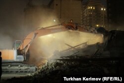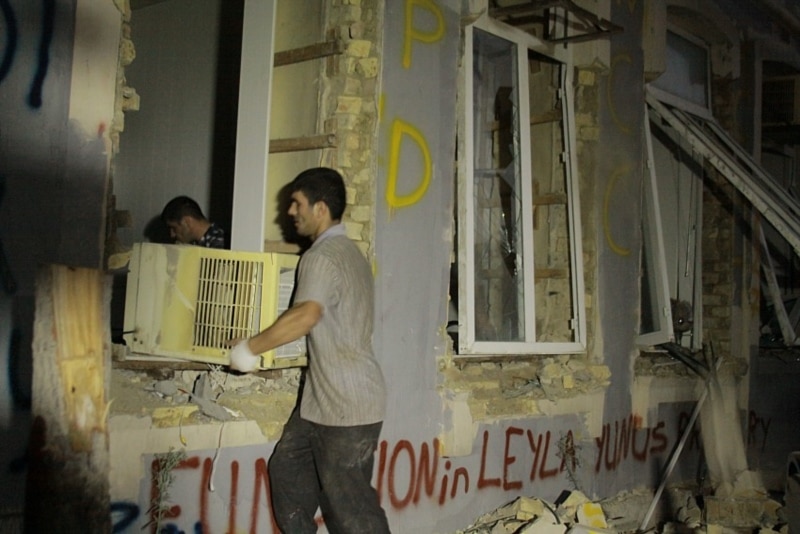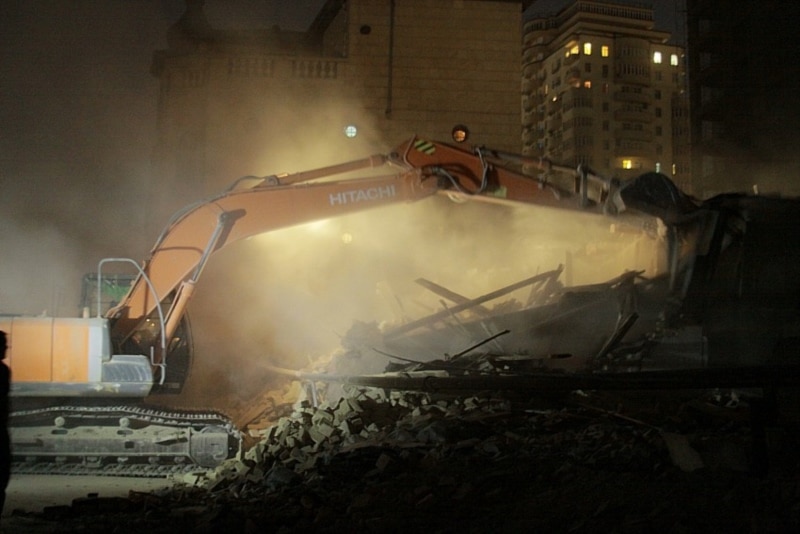 Hadisə yerində olan AzadlıqRadiosunun müxbiri xəbər verir ki, adamlar ofisdə ola-ola polis və mülki şəxslərin nəzarəti altında texnikanın və fəhlələrin köməyi ilə ofisin sökülməsinə başlanıb.