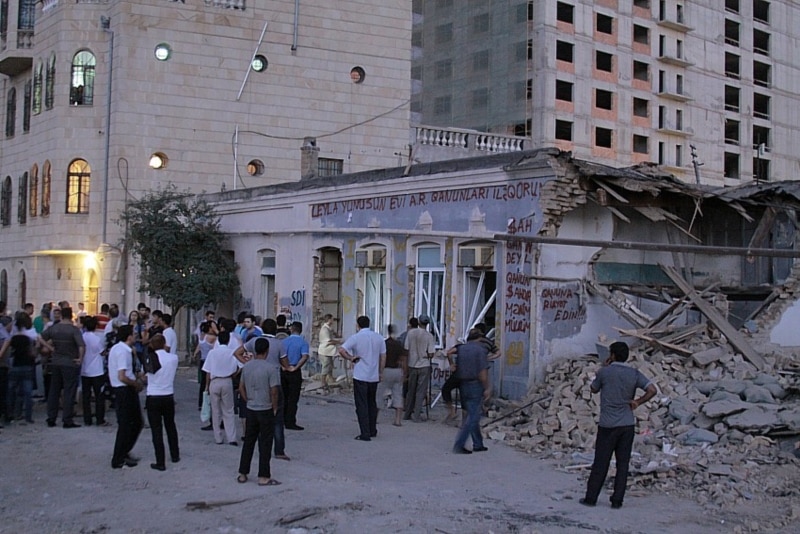 Sülh və Demokratiya İnstitutunun paytaxt Bakının Şəmsi Bədəlbəyli küçəsində yerləşən ofisini avqustun 11-də sökülüb. Sülh və Demokratiya institutunun rəhbəri Leyla Yunusun həyat yoldaşı Arif Yunus Azadlıq Radiosuna deyib ki, ofisi sökməyə gələnlər qaz s