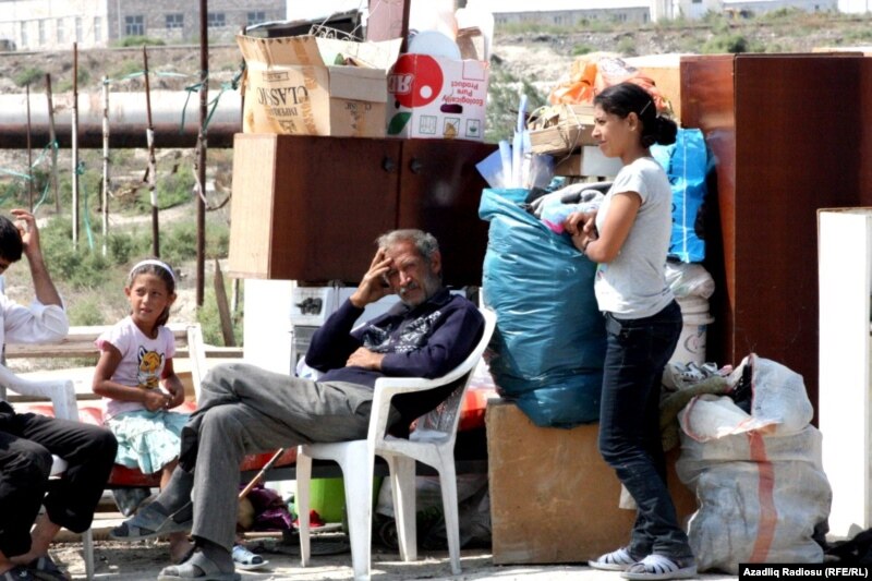 Evi uçurulandan sonra küçədə gecələyən Qubadlı rayonundan olan məcburi köçkün Nəbi Həsənov düşdükləri ağır vəziyyətdən çıxış üçün prezidentdən və onun xanımından kömək istəyir. Deyir evləri dağıdılandan sonra bütün ünvanlara etdikləri müraciətlər cavabsız qalıb: