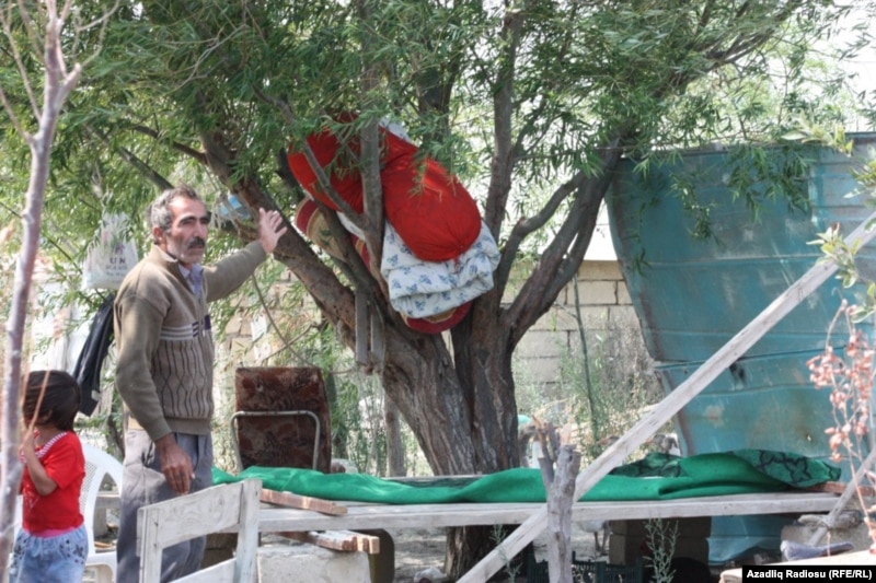 «Gecə birimiz maşında, birimiz stolun üstündə yatırıq. Ağcaqanad imkan vermir yatasan. Çöldə bütün paltarlarımız şehin altında qalır. Qohum evində də bir və ya iki gün qalmaq olar. Çox qalmaq olmur. Uşaqlarımızın hamısı xəstəlik tapıb. Amma bizim evlərimizi uçuranlar əllərin qoyub başının altına yatırlar villalarında, deyirlər elə belə də olmalıdır».