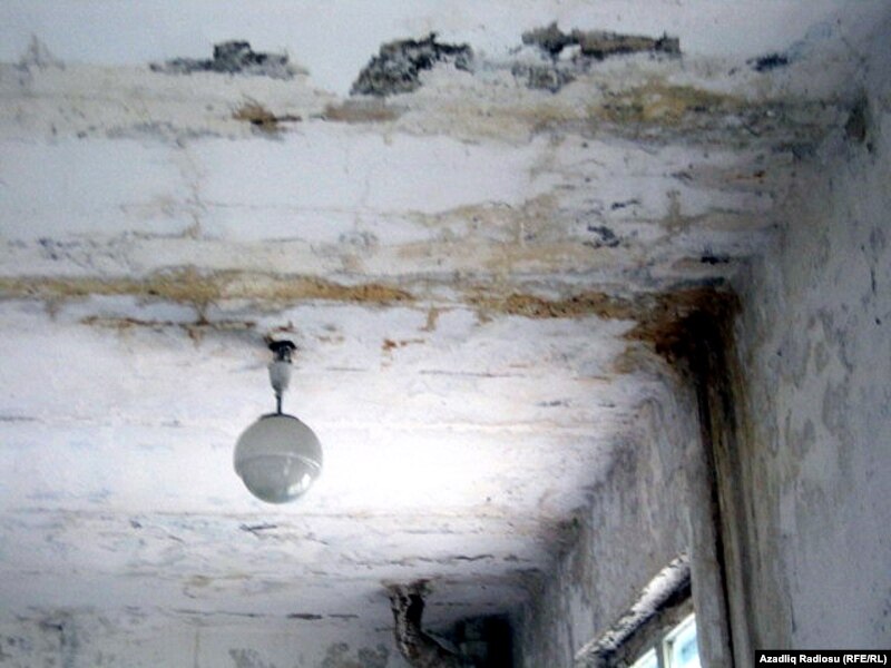 Азер Гасанов говорит, что он и его коллеги ремонтировали свои кабинеты еще лет пять тому назад, но в дождливую погоду не могут находиться в них.