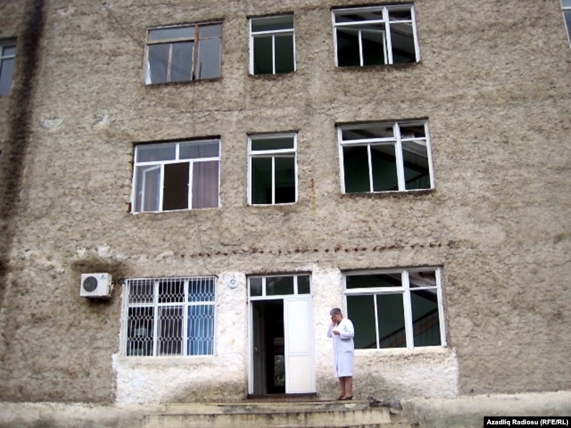 У входа в Центральную больницу Гёкчайского района, июля 2011