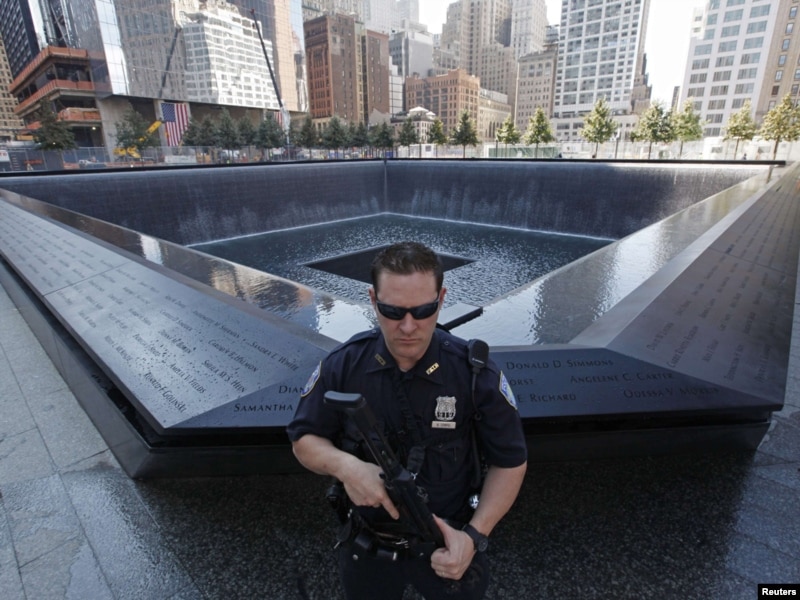 Усиленные наряды полицейских у всех выходов из метро сразу насторожили. Мои сомнения оправдались – к Мемориалу нас не пустили, объяснив, что 11 сентября будут допущены только члены семей погибших, а все остальные желающие - только на следующий день. Однако мы упорно «пробирались» с толпой вперед поближе, чтобы хоть как-то почувствовать ритм и энергию происходящего внутри. По телевидению мы уже смотрели, что на месте, где стояли здания ВТЦ, теперь возведены два фонтана, повторяющие контуры башен, а вокруг в бронзе высечены имена 2 983 погибших... Меня очень тронуло, что списки погибших зачитывали их отцы и матери, сестры и братья, тети и дяди, сыновья и дочери. Их было триста человек и каждый зачитывал по 10 фамилий, в конце называя своих близких, тепло и душевно вспоминая их. Потом они ходили у бронзовых плиток, делая на белых листах трафареты высеченных фамилий своих родных, обнимали знакомых и незнакомых.