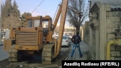 Этот трактор с подъемным агрегатом и с нависшими над прохожими трубами более 2 месяцев стоял так на проспекте Зардаби, рядом с Бизнес-университетом, неподалеку от площади 20 января. Во время долгостроя на проспекте в траншею укладывали новые трубы, вытаскивали старые. Потом сотрудники стройорганизации, которая занималась укладкой, оставили все, как есть и ушли. А трубы так остались висеть.