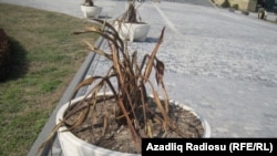 Üzü dənizə baxdığından həmin palmalar bulvardakı başqa palmalar kimi yaşıl deyil, budaqları əyilib. Elə palmaların yaxınlığında iri qablarda əkilən kol bitkiləri də solub, saralıb.