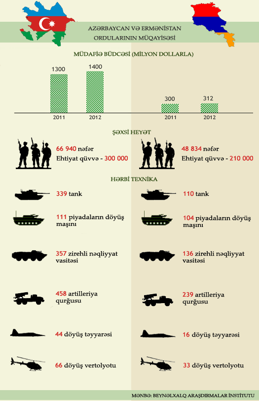 «Hərbi Balans 2012» hesabatında Azərbaycan və Ermənistan orduları haqqında verilən məlumatın qısa xülasəsi.