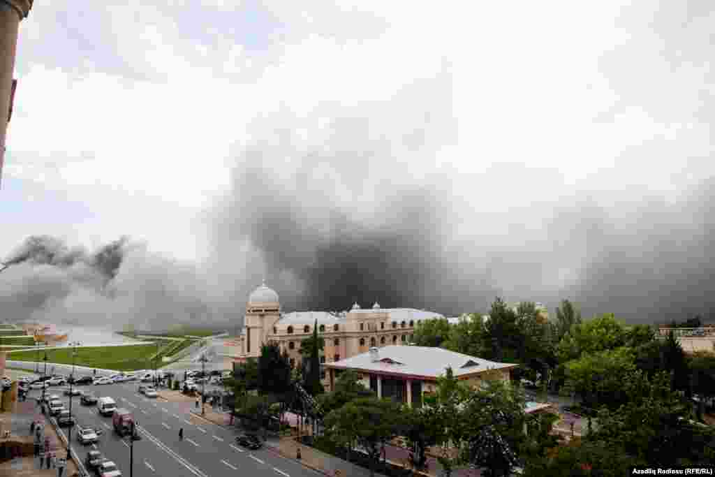 20 июля в Баку начался пожар в новопостроенном комплексе. На тушение первоначально было выделено 10 пожарных машин