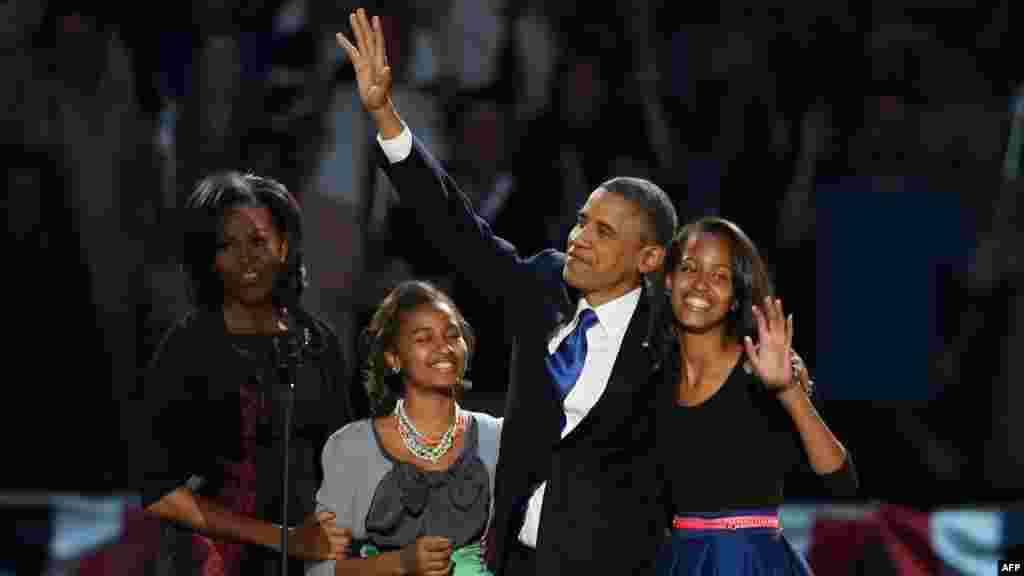 Barack Obama tərəfdarları Çikaqoda şənlik edir. Prezident onlara təşəkkür edib