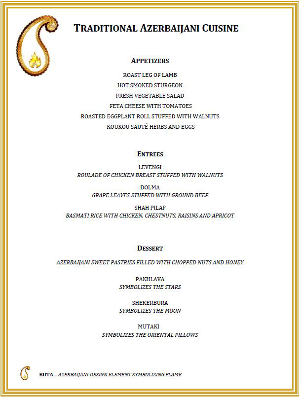 «Vaşinqtonda bakılı dostlarla bir gecə» devizi ilə keçirilən nahara fəxri rəhbərliyi səfir Elin Süleymanov edib. Naharda qonaqlara Azərbaycan musiqisi və rəqsi, eləcə də Azərbaycan xörəkləri təqdim olunub.