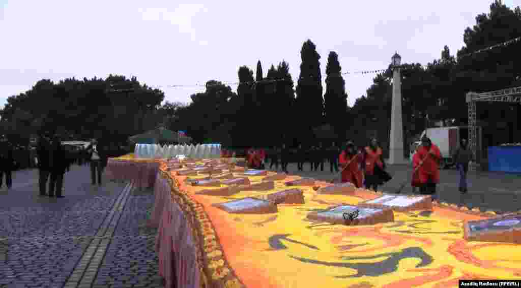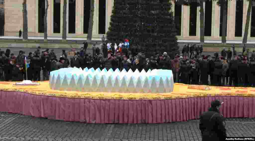 Sumqayıtın icra başçısı Eldar Əzizov ilk dəfə belə tortu Gəncədə icra başçısı olanda hazırlatdırıb. Onun iş yerini dəyişməsi ilə bu ənənə də Gəncədən Sumqayıta keçib. Tort Sumqayıt şəhər icra hakimiyyətinin qarşısındakı Bayraq Meydanında kəsilib. 51 metr uzunluğunda tortun çəkisi 11 tondur. Təşkilatçılar onun hazırlanmasına 22 min yumurta, 2 tona yaxın un, 1.5 ton şəkər, 310 kiloqram qoz sərf etdiklərini deyirlər.