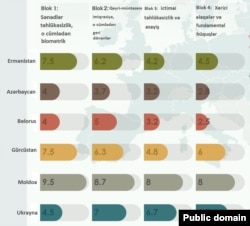 В блоке «Нерегулируемая иммиграция» Молдове присуждено 8,7, Укране 7, Грузии 6,3 , Беларуси 5, Армении 6,2 баллов. Азербайджан снова на последней строчке – 3,7 баллов.