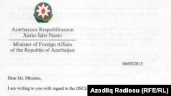 «Затронутые в письме вопросы внимательно изучаются и обсуждаются с государствами-участниками. Пока невозможны комментарии на эту тему по причине конфиденциальности обсуждений. Генеральный секретарь ОБСЕ Ламберто Анньер обсудил поднятые в письме вопросы с президентом Ильхамом Алиевым и министром иностранных дел Эльмаром Мамедъяровым».