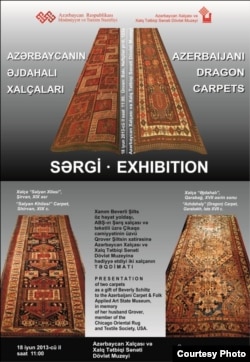 --Çox böyük xalıdır. 4 metrdən artıqdır. 2 metrə yaxın eni var. Dediyim kimi, kolleksionerlər öz topladıqlarını fanatikcəsinə sevirlər və saxlanılması da yüksək səviyyədə olur. Odur ki, xalı ciddi konservasiya keçirdiyindən yaxşı vəziyyətdədir. Bu, xalçaların saxlanmasında bizə də nümunə ola bilər! Biz bu xalçaları göstərmək üçün muzeydə özümüzdə olan XVIII-XIX-XX əsrə aid xalçaların sərgisini təşkil etdik. Sərgilənən xalçaların hamısı bizə hədiyyə edilən xalçaların çeşnisindən toxunub. Yəni, «Əjdahalı» xalçasının kompozisiyası əsasında yaradılıb inkişaf etdirilmiş, müxtəlif xalça məktəblərində toxunmuş xalçalar bütün rəngbərəngliyi və inkişafı ilə sərgidə bir yerdə nümayiş olundu.