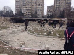 Hadisə yerinə aparan yollar bağlanıb. Yaxınlıqdakı, təxminən 30-40 metr məsafədəki mağazalara da ziyan dəyib.