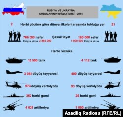 AzadlıqRadiosu Rusiya və Ukrayna ordusunun hərbi texnika, şəxsi heyətindən müqayisəli infoqrafika hazırlayıb.