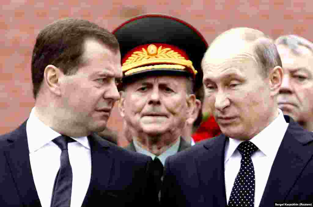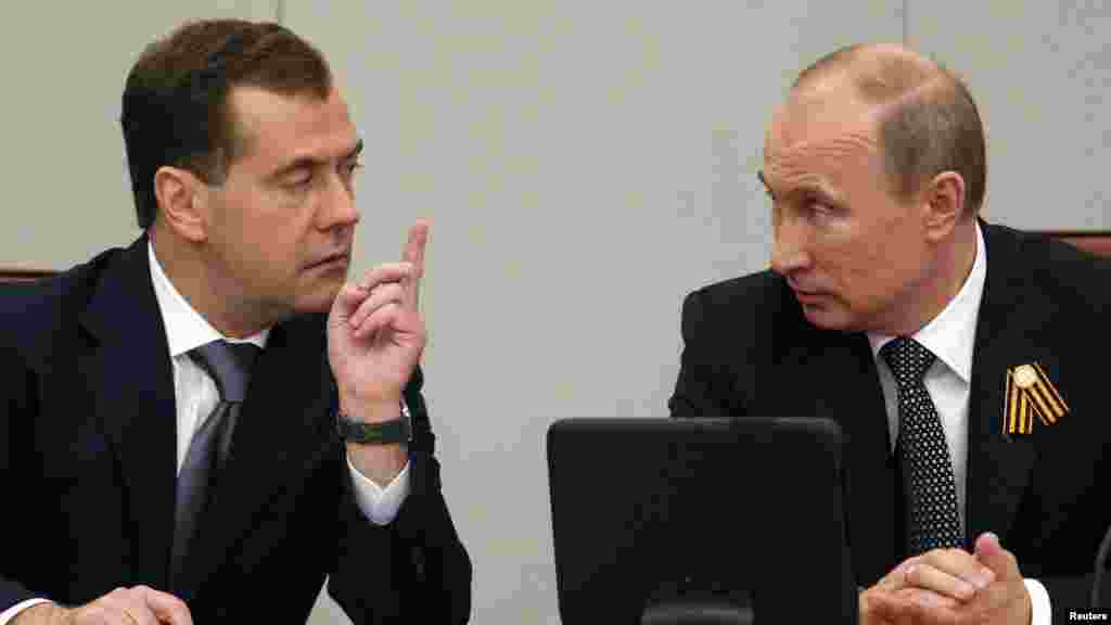 Rusiya prezidenti Vladimir Putinlə Baş nazir Dmitry Medvedev prezident və baş nazir kürsüsünü illərlə bir-birinə ötürüb həm də lətifələrə, tənqidlərə mövzu oldular. Onlar kamera qarşısında da olduqca mehriban görünürlər. Bu ikilinin müxtəlif illərdə çəkilmiş bir-birindən maraqlı fotolarını təqdim edirik.