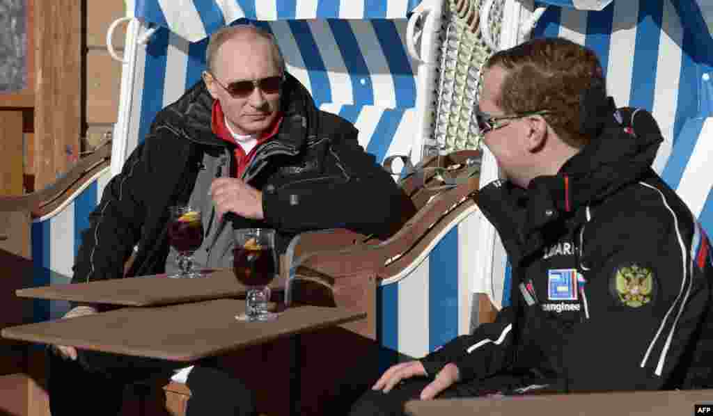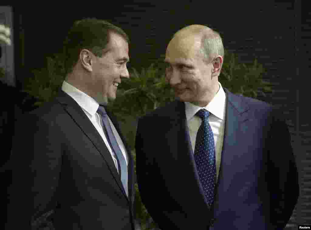 Rusiya prezidenti Vladimir Putinlə Baş nazir Dmitry Medvedev prezident və baş nazir kürsüsünü illərlə bir-birinə ötürüb həm də lətifələrə, tənqidlərə mövzu oldular. Onlar kamera qarşısında da olduqca mehriban görünürlər. Bu ikilinin müxtəlif illərdə çəkilmiş bir-birindən maraqlı fotolarını təqdim edirik.
