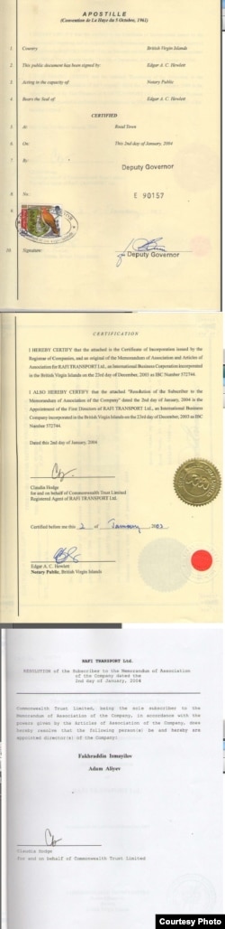 Deməli, əslində, Birləşmiş Ərəb Əmirliklərində yaradılan və sahiblərinin adı gizli saxlanan bu şirkət Vircin adalarındakı eyniadlı şirkətə məxsusmuş. Orada RAFİ Oil (BVI) şirkətinin direktorları kimi isə iki şəxsin adı göstərilib –  SOCAR rəsmisi Fəxrəddin İsmayılovun və SOCAR prezidentinin qaynatası Adəm Əliyevin.