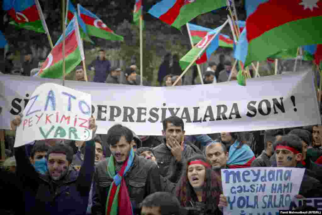Noyabrın 9-da paytaxtın hər bir tərəfi bayraqlara büründü. Bakı bir yanda Bayraq gününü qeyd etdi, başqa bir yanda bayraqla etiraz günü etdi. Demokratik qüvvələrin Milli Şurası siyasi məhbuslara azadlıq tələbi ilə mitinq keçirdi. 2 saatlıq mitinq necə keçdi? Famil Mahmudbəylinin fotolarında.