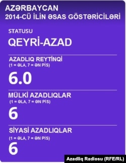 195 ölkəni əhatə edən hesabatda Azərbaycan son bir neçə ildə olduğu kimi, "Qeyri-azad" ölkələr sırasında qərarlaşıb. Azərbaycanda hökumət tənqidçilərinin, insan haqları fəalları və jurnalistlərin həbsə atıldığı qeyd olunur.