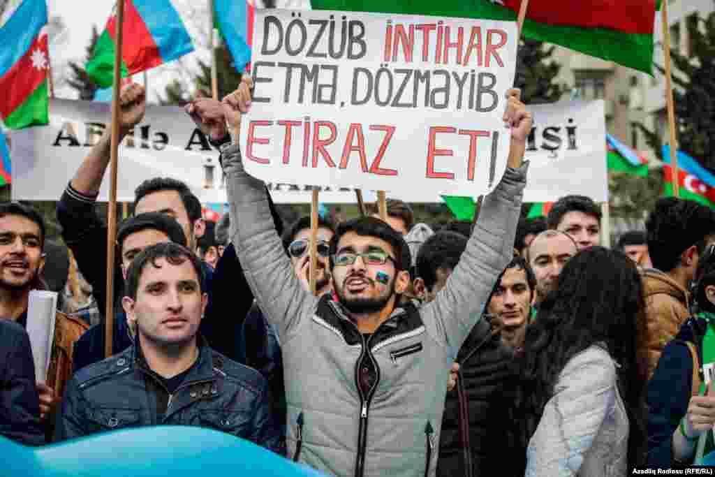 «Talana son» şüarı ilə keçirilən mitinqdə Milli Bankın qəfil elan etdiyi devalvasiya, manatın 33 faiz dəyərdən salınması və bunun insanların yaşayışına mənfi təsiri qabardılıb. AzadlıqRadiosu mitinqi canlı yayımlayıb.
