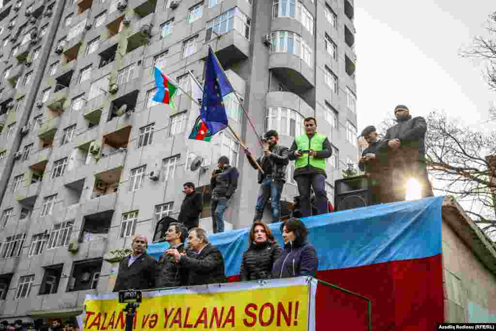 «Talana son» şüarı ilə keçirilən mitinqdə Milli Bankın qəfil elan etdiyi devalvasiya, manatın 33 faiz dəyərdən salınması və bunun insanların yaşayışına mənfi təsiri qabardılıb. AzadlıqRadiosu mitinqi canlı yayımlayıb.