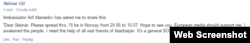 Həmin məktubda deyilir ki, diplomat iyunun 29-dan iyulun 10-dək Norveçdə olacaq. O, Steinar Gil-lə görüşmək və Avropa mediasından dəstək istədiyini yazıb: