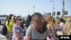 Qadınlardan hardan gəldiklərini soruşanda “biz təhsildənik” cavabını verirdilər. Üzündən narazılıq yağan başqa biri “bizi bura məcbur gətiriblər” deyir. Yanındakılar tez onun “səhvi”ni düzəldir: “Yox, yox, özümüz gəlmişik. İşdən bizə bilet verib dedilər ki, gedərsiniz. Bayramdır də, bəzənib-düzənib gəlmişik”.
